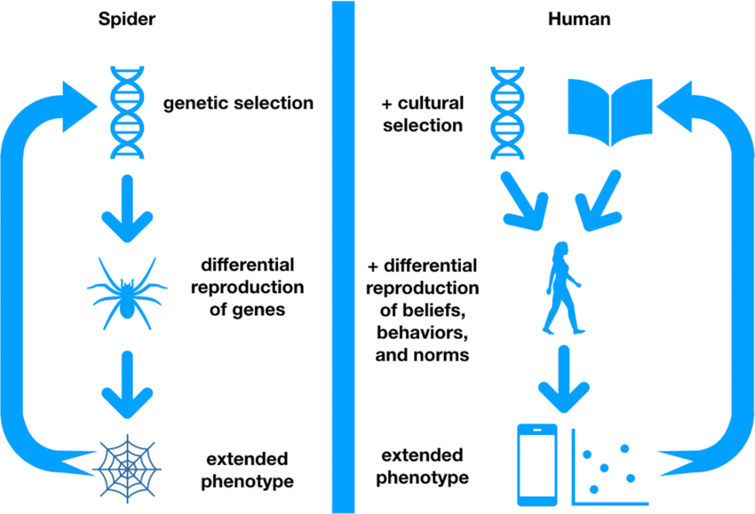 Dawkins expanded on his gene-centered view in The Extended Phenotype (1982), introducing the idea that genes influence the traits of organisms and the environments they shape. He argued that an organism’s behavior and its impact on its surroundings—its “extended phenotype”—are also expressions of its genes.